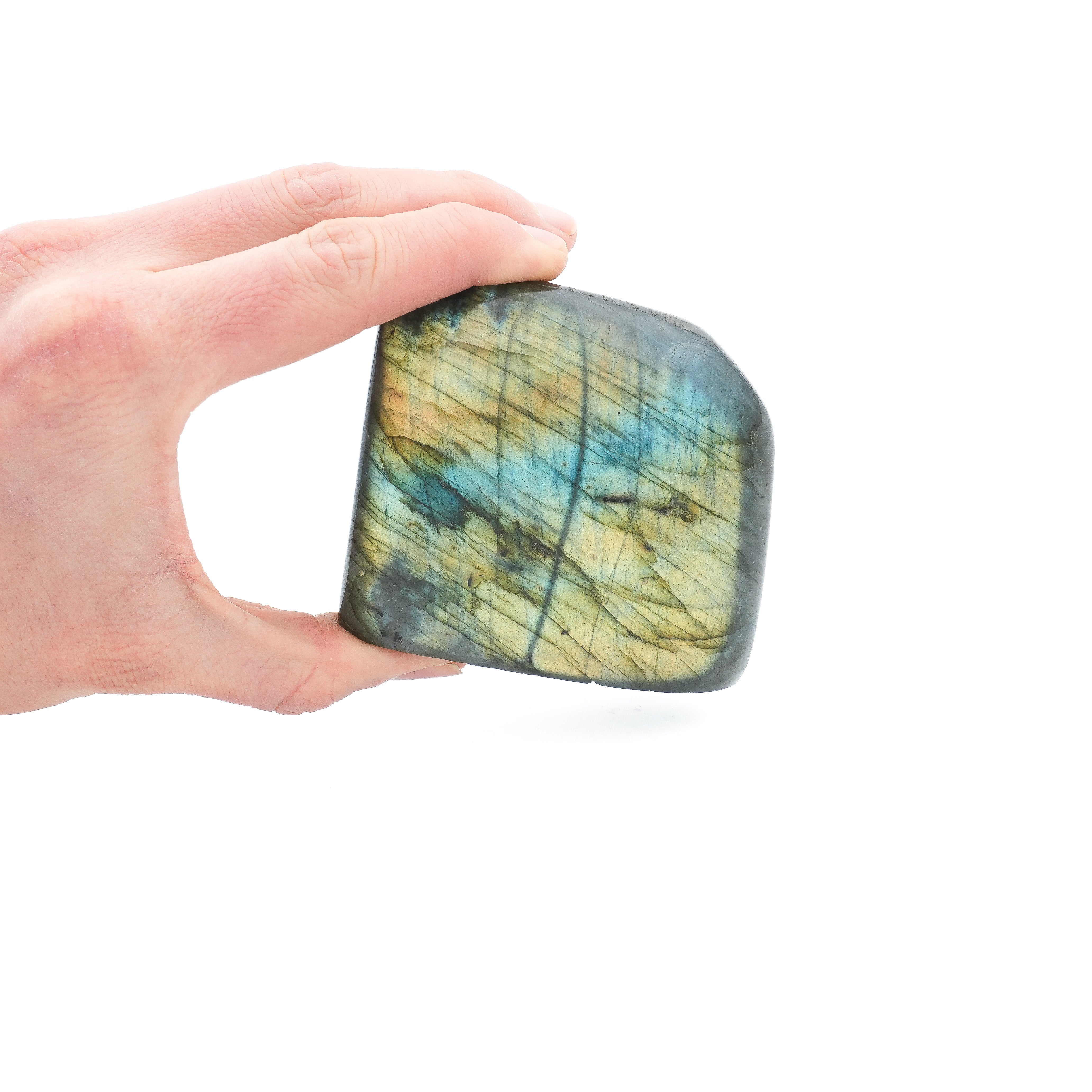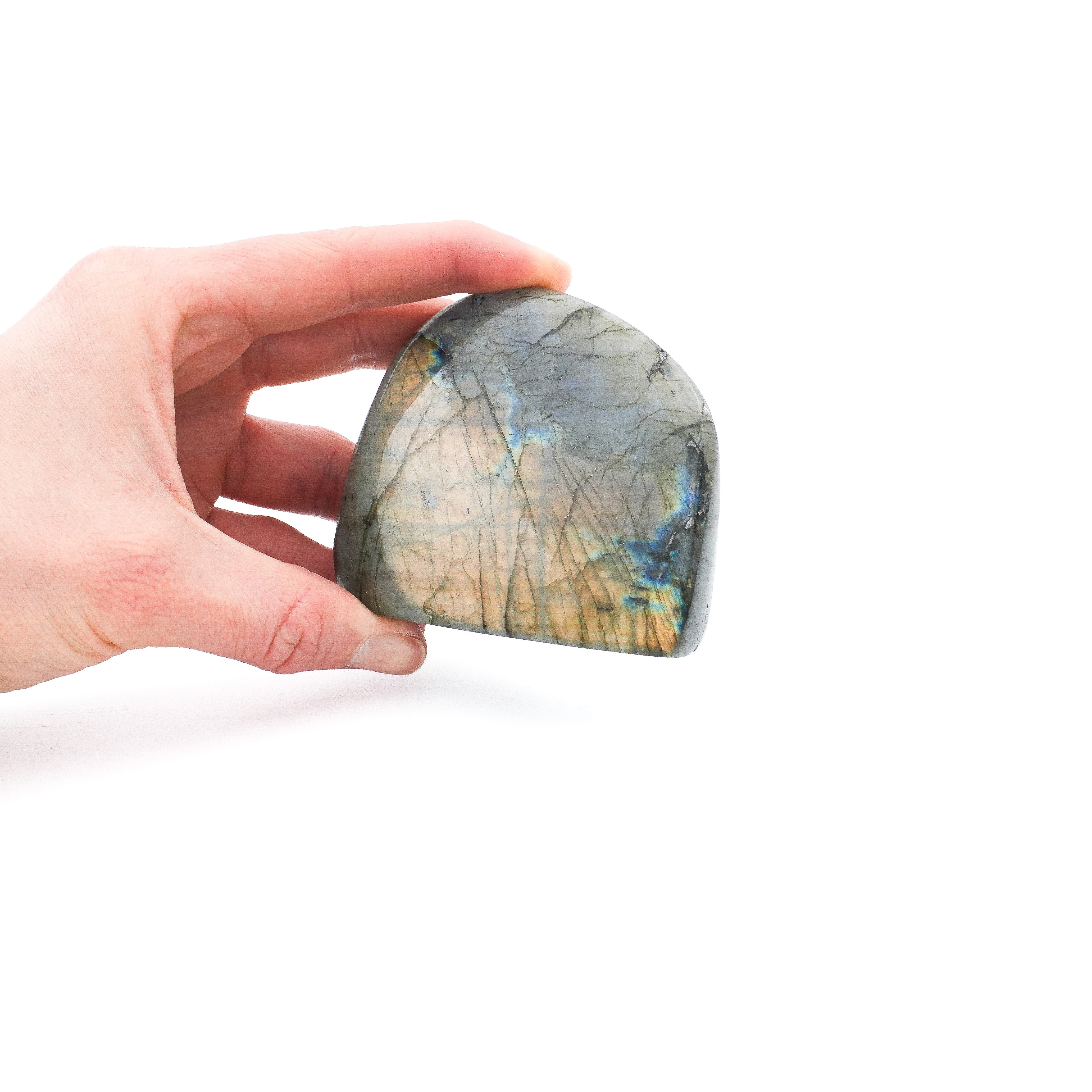 Les différentes couleurs de la labradorite sont le résultat de la labradorescence, un effet optique provoqué par la réflexion de la lumière à l’intérieur de la pierre. La couleur de la labradorite peut varier du bleu intense au vert, au doré ou même au violet, et chaque pièce est unique en fonction de l'angle de la lumière et de sa pureté.