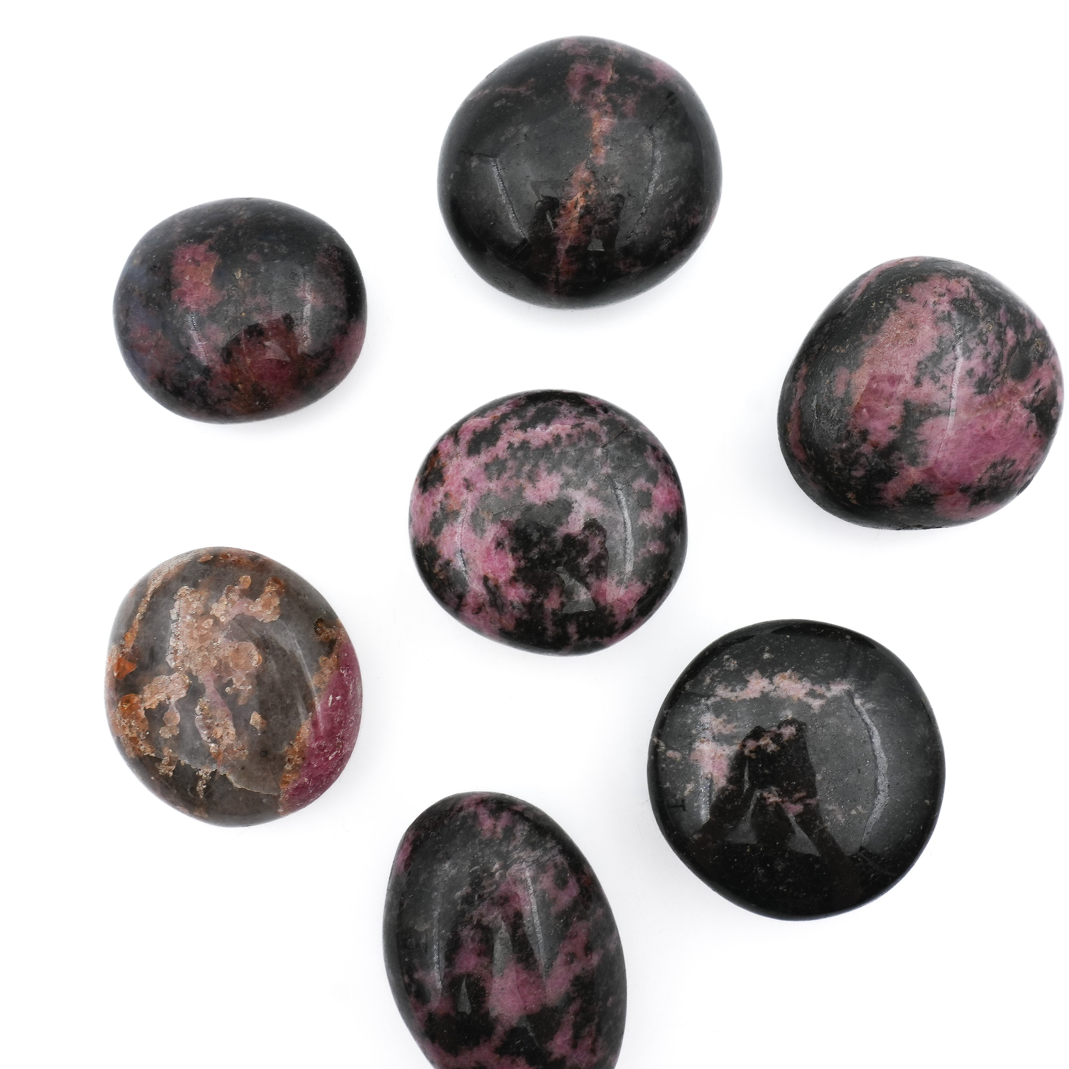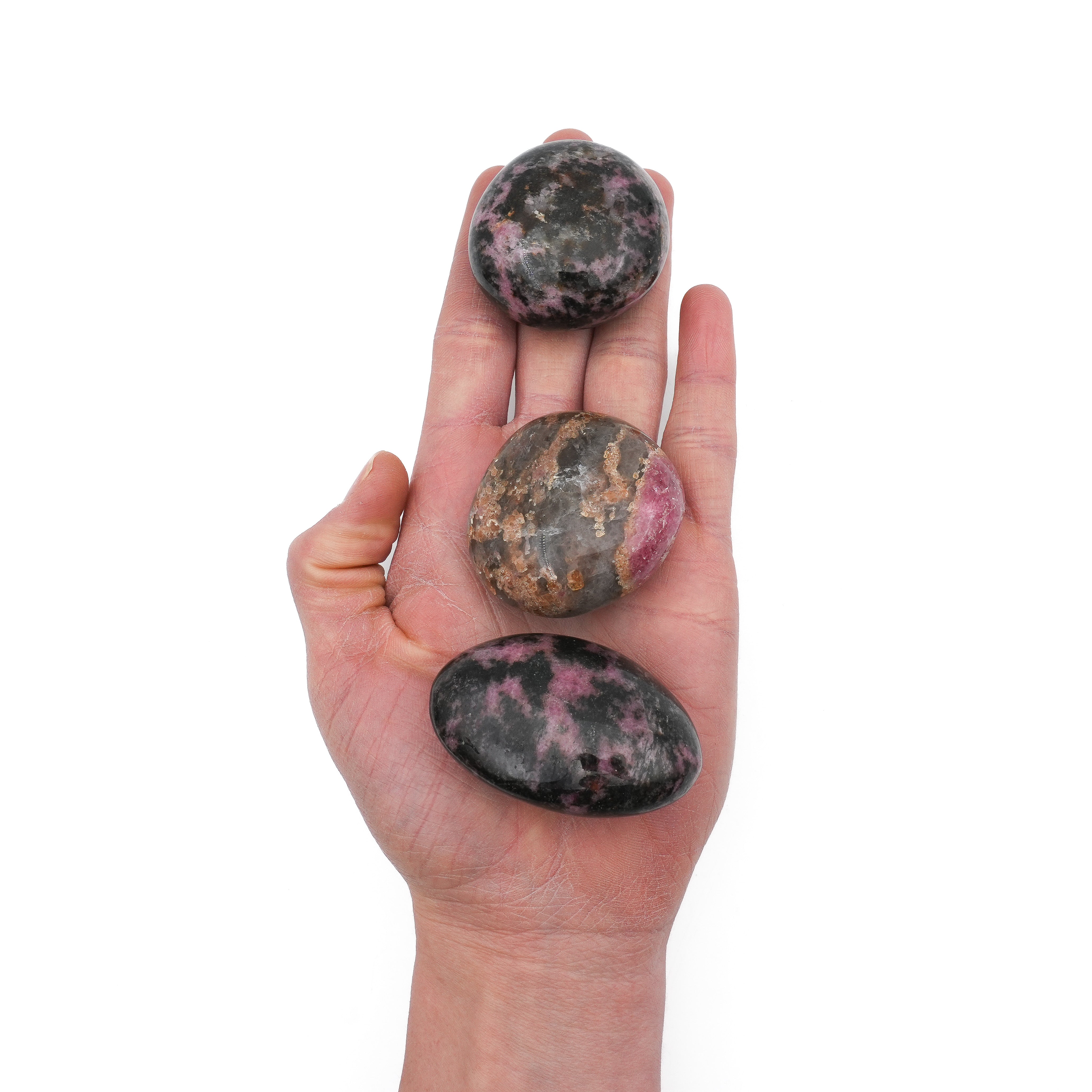 Chaque galet en Rhodonite est une véritable œuvre d'art naturelle, avec des teintes uniques de rose et de noir, parfois avec des inclusions naturelles qui témoignent de l'authenticité et de la beauté de la pierre. Un choix parfait pour les moments de méditation, ou simplement pour apporter un peu de sérénité dans votre quotidien.