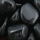 Chaque pierre roulée d'obsidienne noire est lisse et brillante, captant magnifiquement la lumière et mettant en valeur sa couleur noire profonde et son éclat unique.
