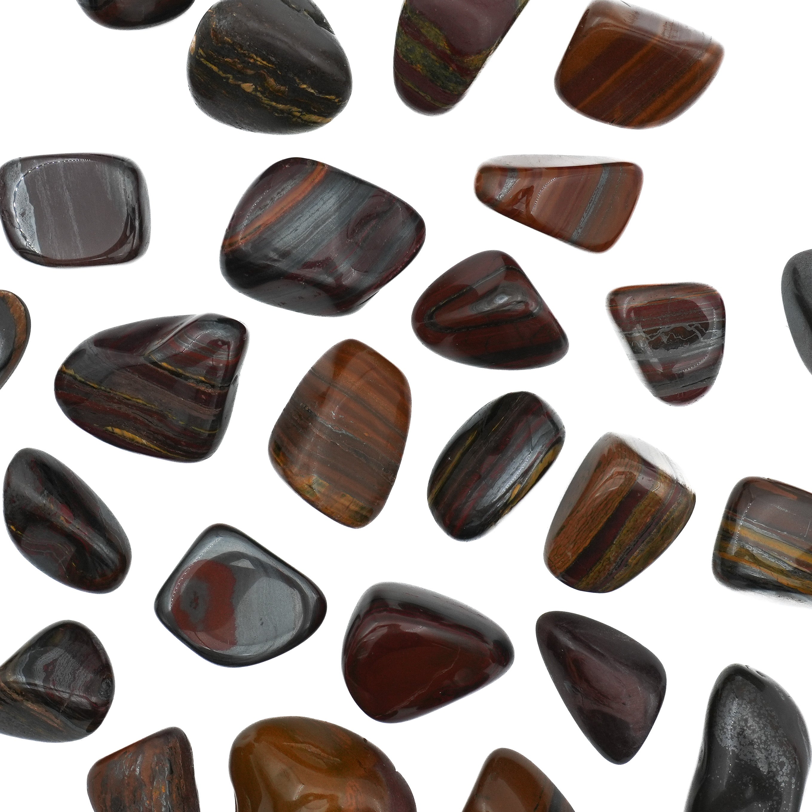 Nos pierres roulées en Œil de Fer se distinguent par leurs nuances profondes allant du rouge au marron, voire au noir. Le format S offre une présence plus discrète, tandis que le format M apporte une aura plus marquée. La forme arrondie et lisse de chaque pierre rehausse la beauté naturelle du minéral, faisant de chacune une pièce décorative aussi puissante qu'élégante.